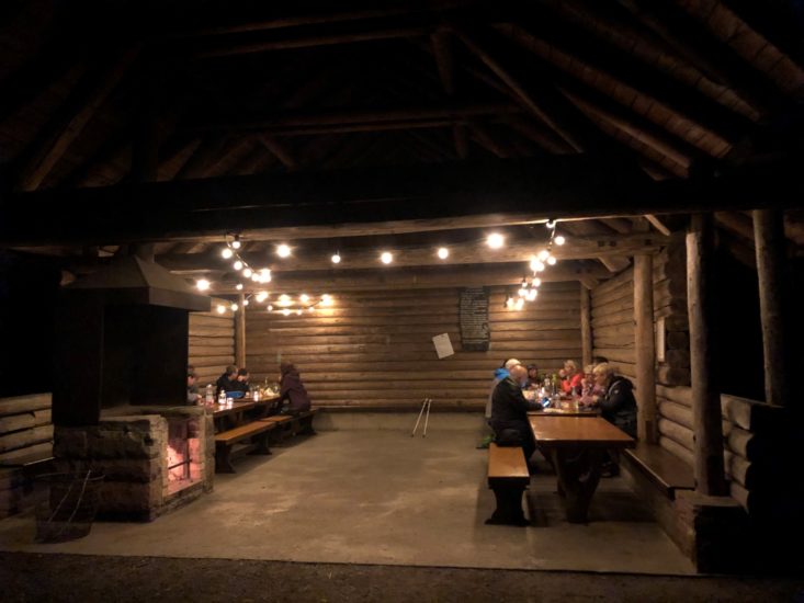 Aufgrund der Corona-bedingten Einschränkungen hatte es sich schon eingebürgert, eigene Marschverpflegung mitzunehmen. Damit diese stilecht genossen werden konnte, hatte man den Bauhof gebeten, Lichterketten in der Herrenholzhütte aufzuhängen. Nachdem ein wärmendes Holzfeuer angezündet und Kerzen verteilt waren, stand einem stimmungsvollen nächtlichem Picknick nichts mehr im Wege.