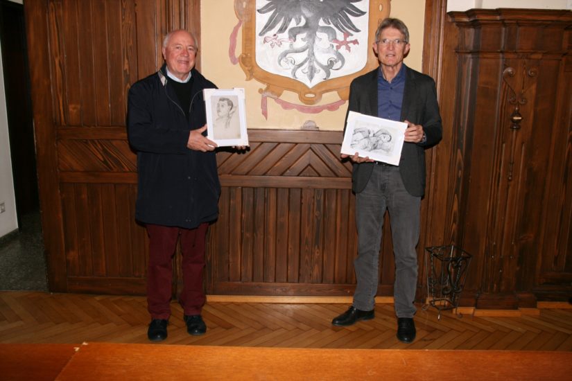 Hauptamtsleiter Ludwig Börsig bedankte sich bei den Freunden der Zeller Kunstwege für die zehn Reproduktionen, die den Originalen im Skizzenbuch um nichts nachstehen. Dieses Dokument war von den Nachfahren Halters den Kunstfreunden zur Reproduktion ausgehändigt worden. Bislang fehlten im Stadtarchiv Arbeiten von Otto Halter. Im Fundus sind bislang einige Bilder von Ernst Peter Huber und in größerer Zahl Arbeiten von Josef Frank vertreten. Diese waren in der jüngsten Ausstellung neben Bildern von Hans Göhringer und Wilhelm Lehmann zu sehen.