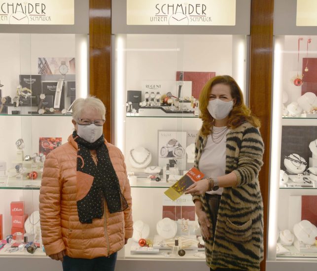 Beim Einkauf im Juweliergeschäft Schmider am Nikolaus-Samstag hatte sie ihr rotes Glückslos ausgefüllt, das ihr einen Hauptgewinn im Wert von 250 Euro bescherte. Inhaberin Elisabeth Hecht (rechts) konnte der glücklichen Gewinnerin den Einkaufsgutschein überreichen. »In Zell bekommt man alles, was man benötigt«, stellte die treue Kundin fest. Genau diesen möchten die Mitgliedsfirmen des HGV mit dem Weihnachtsgewinnspiel »Danke« für ihre Treue sagen. Das Weihnachtsgewinnspiel dauert noch bis zum 19. Dezember. Verlost werden Einkaufsgutscheine im Gesamtwert von 3.000 Euro.