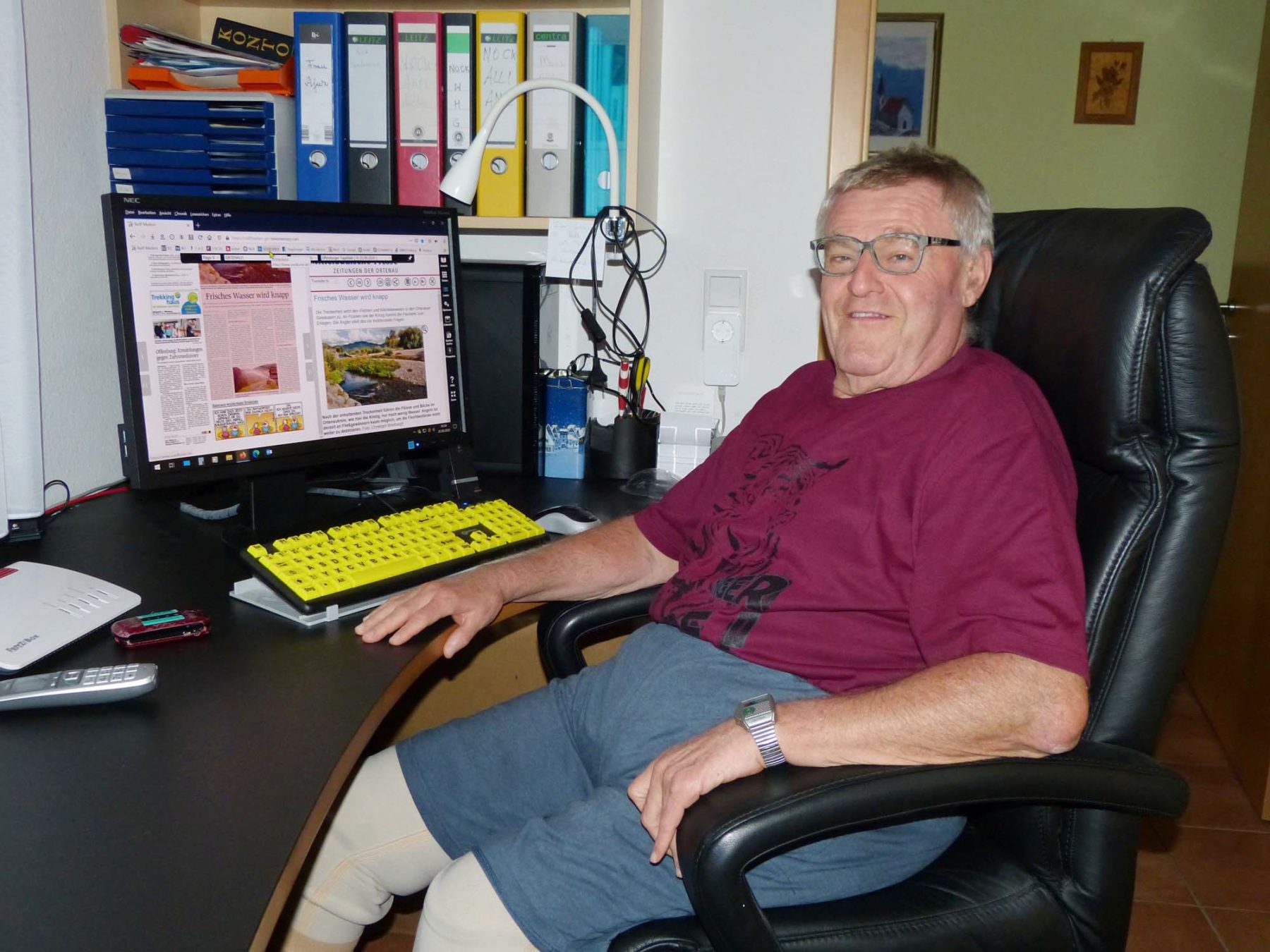 Karl-Josef Willmann an seinem häuslichen Arbeitsplatz, an dem er für seine beiden Schützlinge agiert, die er – auch mit Hilfe seiner Frau – noch immer rechtlich zu betreuen vermag.