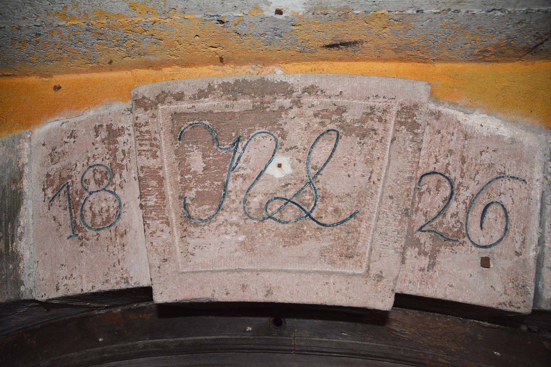 Der bis heute erhaltene Türsturz belegt das Baujahr 1826 des untersten Gebäudeteils. Die Initialen NL stehen für den Namen des Rabenwirts Nepomuk Lechleitner.