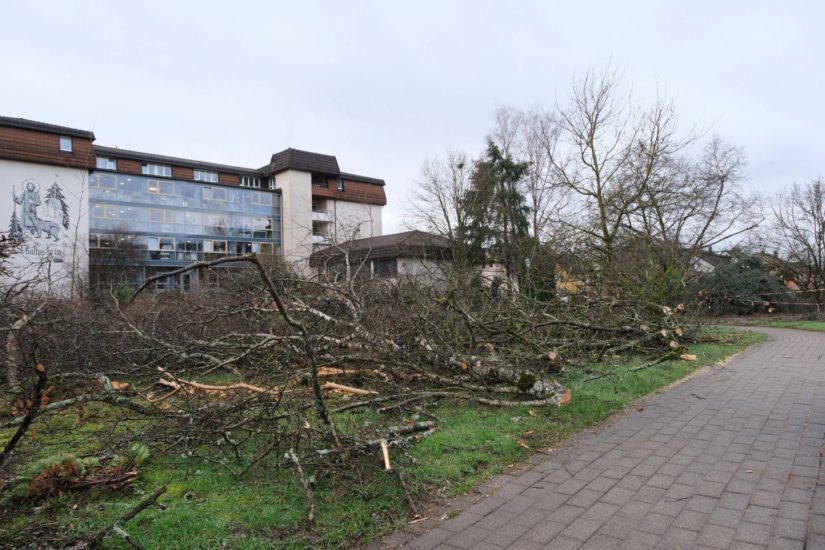 Anfang der Woche wurden beim Seniorenzentrum St. Gallus Baumfällarbeiten durchgeführt. Auf dem Areal vor dem Hauptgebäude wird ein Neubau mit 90 Pflegebetten entstehen. Foto: Susanne Vollrath