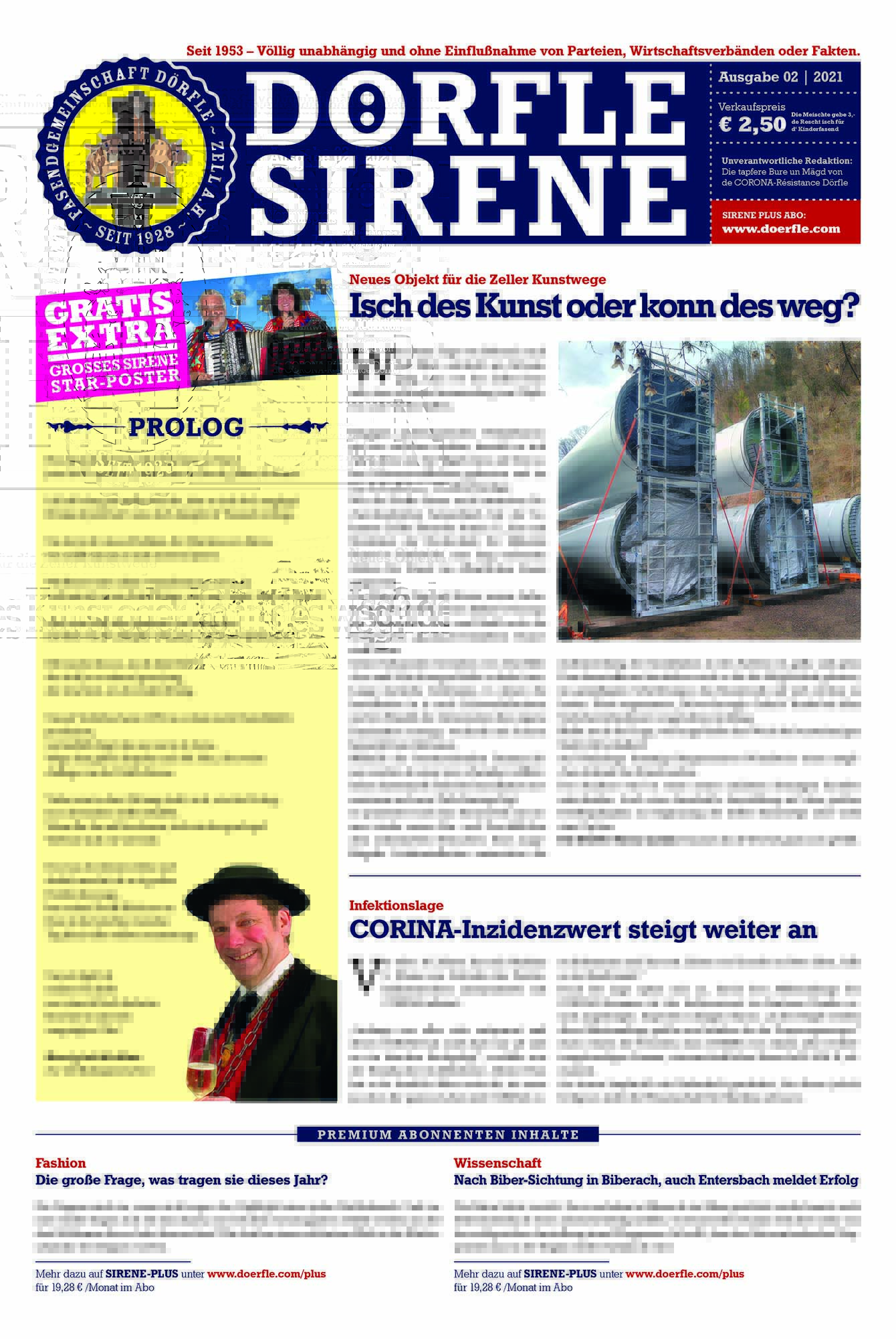 Als feststand, dass 2021, aus Gründen die vermutlich bereits in anderen Artikeln dieser Zeitung erwähnt wurden, kein Dörfleabend stattfinden kann, fasste das Dörfle Zell den Entschluss, die Sirene wieder aufleben zu lassen. Ohne Einfluss von Parteien, Wirtschaft oder Fakten erzählt das Dörfle Geschichten zum Lachen und Nachdenken. Wenn Sie sich fragen, wem Sie vertrauen können, vertrauen sie der Sirene.