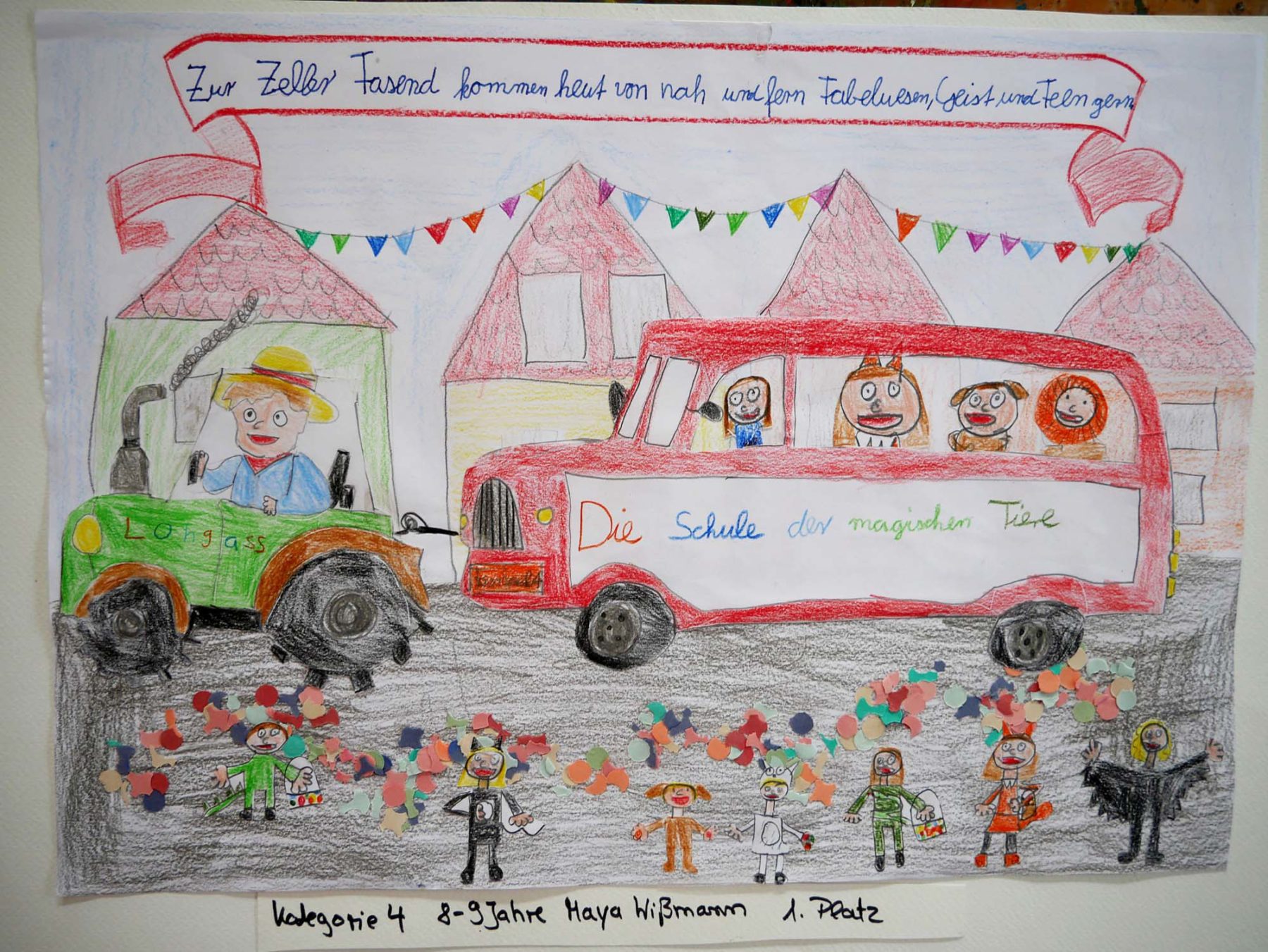 Gemalt wurden die Bilder zum Thema Fasendsumzug. Die Initiatorin und auch die unterstützende Zeller Narrenzunft war von der Flut der eingegangenen Kunstwerke begeistert. Frau Bischoff sagte: »Sie hat sich in jedes einzelne Bild verliebt, die Kinder haben mit so viel Herzblut gemalt.«