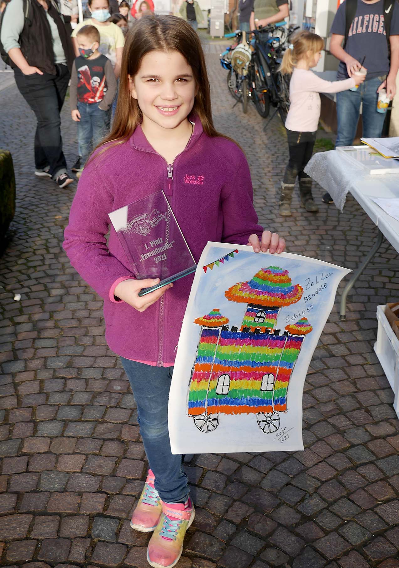 Alle jungen Künstler bekommen einen Teilnehmer-Button der Zeller Narrenzunft »Zeller Fasendmoler 2021«, sowie eine Überraschungstüte gespendet von der Narrenzunft.