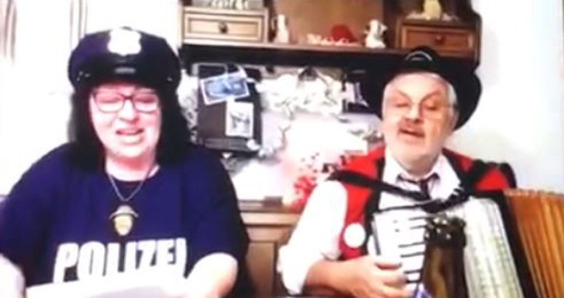 Zwischen den Programmpunkten luden unsere Fasendmusiker Gisela & Karl-Heinz immer wieder live zum Mitsingen und Mitschunkeln ein, so dass zu Hause am Tisch oder auf dem Sofa ausgelassene Fasendstimmung aufkam.