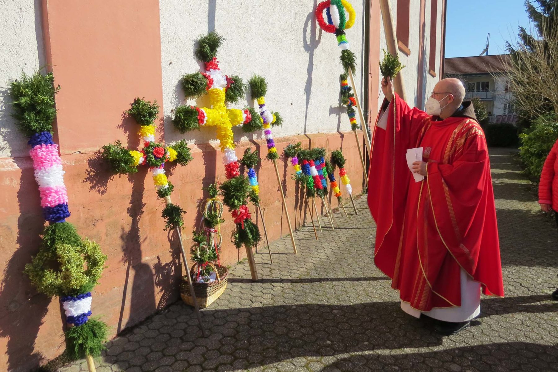 Br. Berthold Oehler vom Zeller Kapuzinerkloster begrüßte die zahlreichen Gemeindemitglieder. »Mit dem Palmsonntag beginnt die Hl. Woche. Die Lieder begleiten uns in die großen Ereignisse dieser Woche: Einzug in Jerusalem, das Abendmahl am Gründonnerstag, die Kreuzigung am Karfreitag und an Ostern die Auferstehung.«