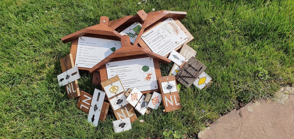 Der Naturlehrpfad auf den Brandenkopf ist fast 100 Jahre alt. Die Schilder erklären den Wanderern die Natur. Es ist einer der ältesten in Deutschland. Auf Teilstrecken verläuft auch der Hansjakob Weg und der Kinzigtäler Jakobus Weg auf dem Naturlehrpfad. Damit die Schilder nicht in die Bäume einwachsen, werden sie mit Unterleghölzern und speziellen Aluminium Nägeln befestigt. Diese lassen sich leicht lösen, was wohl einige Mitbürger dazu veranlasste die Schilder als Souvenir zu entwenden, abzureisen, zu zerstören oder in den Wald zu werfen. Da stellt sich schon wieder die Frage: Wer macht denn so was?