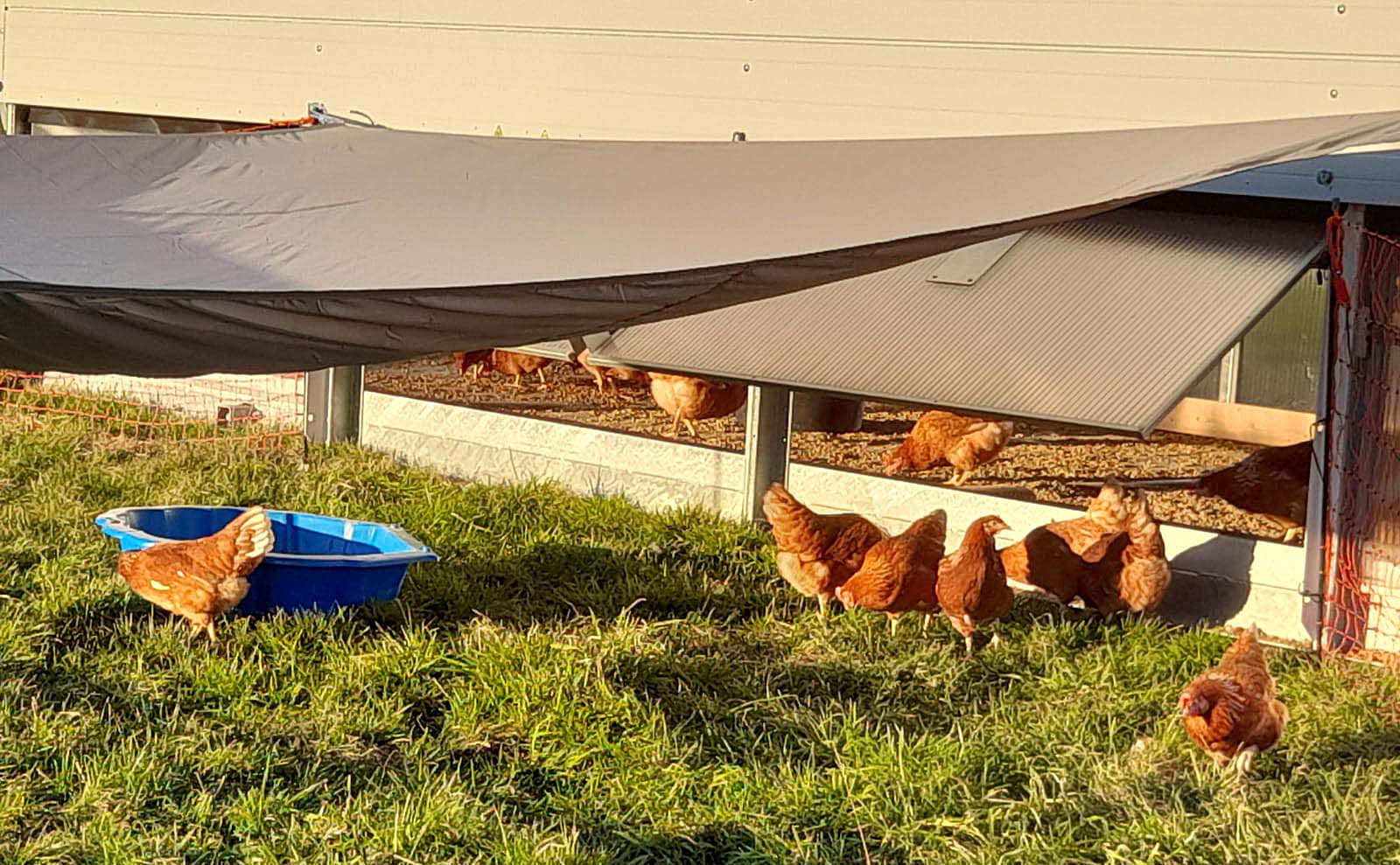 Gegackert, gescharrt und gepickt wird im neu angeschafften Hühnermobil des Schmiederer Früchteparadies in Zell a.H.. 240 Hühner dürfen dort auf den frischen grünen Wiesen des Weilers Lupfen, wie die Einheimischen sagen, am Ende der Kirchstraße in Zell leben und viele frische Eier legen.