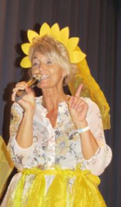 Eine besondere Ehrung erhielt Sofia Lehmann, die seit zehn Jahren dabei ist. Sie hilft inzwischen schon bei den Proben der Kleineren. Als Dank wurde ihr ein T-Shirt geschenkt mit …natürlich einem aufgedruckten Chamöleon. Von dem Publikum gab es lang anhaltenden Applaus – das Theaterspiel der Kinder und die vielen Tänze haben allen sehr gut gefallen.