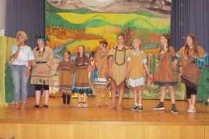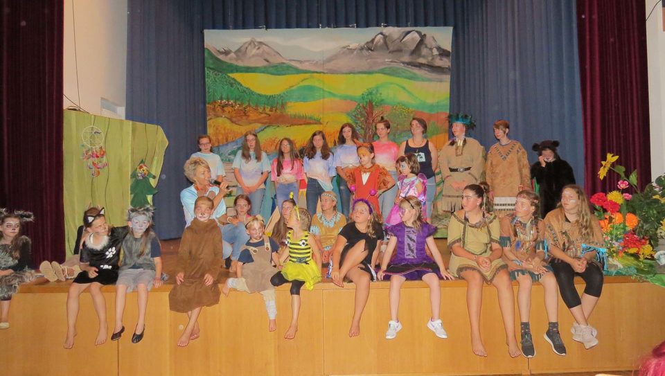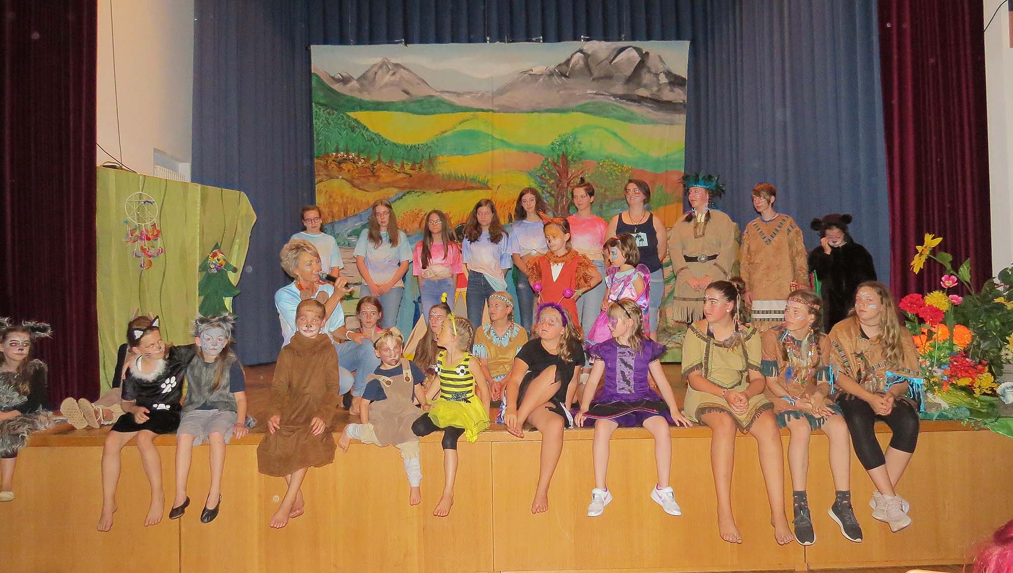 Die kleinen Theaterspieler führten eine Tiergeschichte auf: »Keine Angst vor’m bösen Wolf«. Die größeren Kinder spielten »Chaos im Indianerdorf«. Die Teenager im Alter von 14 bis 18 Jahre zeigten schon mal Tänze aus ihrem Musical, das sie im Herbst aufführen werden. Das Bühnenbild mit Wald, Bäumen und einem Tipi wurde erkennbar auch von den Kindern sehr kreativ gestaltet. Da gab es viele Möglichkeiten, sich auf der Bühne zu verstecken.