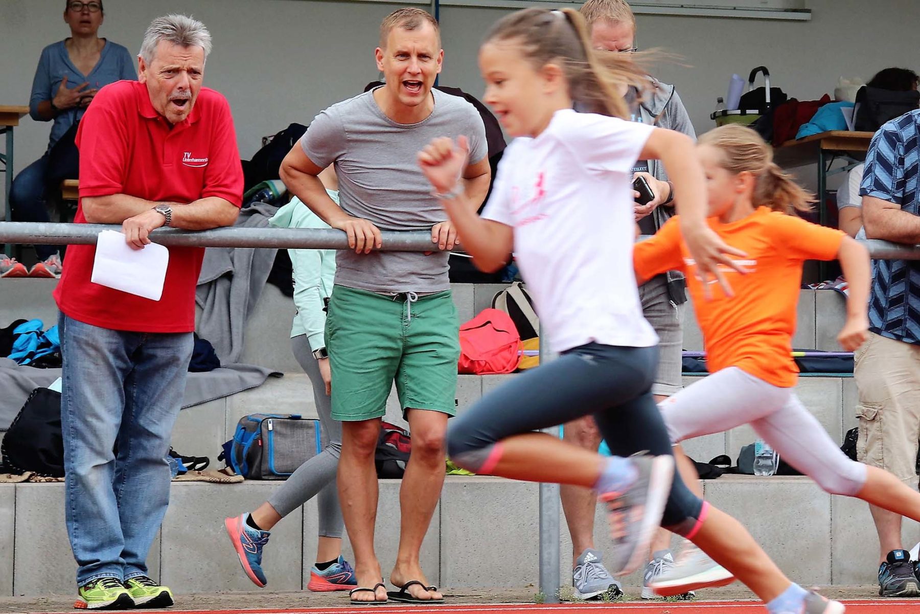 Abteilungsleiter Willi Lehmann und Sebastian Hainz feuern ihre Athleten stimmkräftig an.