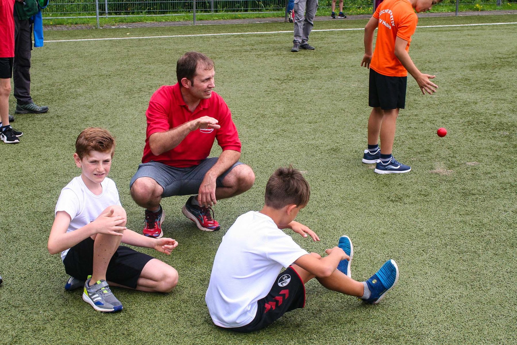 Trainer Sebastian Schwarz gibt seinen Jungs noch Tipps für den anstehenden Ballwurf.