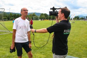 Zu 75 Jahre Leichtathletik im Kreis Wolfach machte Stefan Hättig von Filmmomente etliche Interviews, u.a. mit Übungsleiter Bernd Hettig vom TV Unterharmersbach.