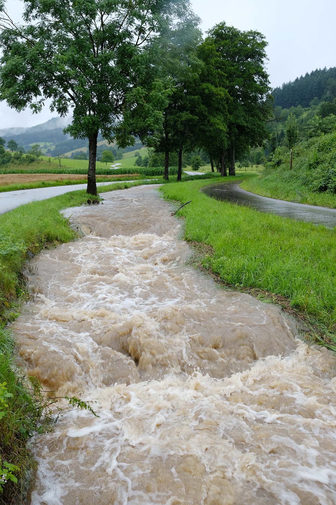 Auch wenn es heute bis zum Redaktionsschluss noch trocken geblieben ist, schaut die Feuerwehr aufmerksam auf den Wetterbericht. Heute Abend könnte es erneut kräftig regnen. Dann ist es nicht mehr ausgeschlossen, dass vielleicht der Bach über sein Ufer tritt. Die Wiesen sind schon nass, können wahrscheinlich die erwarteten Regenmengen nicht mehr aufnehmen.