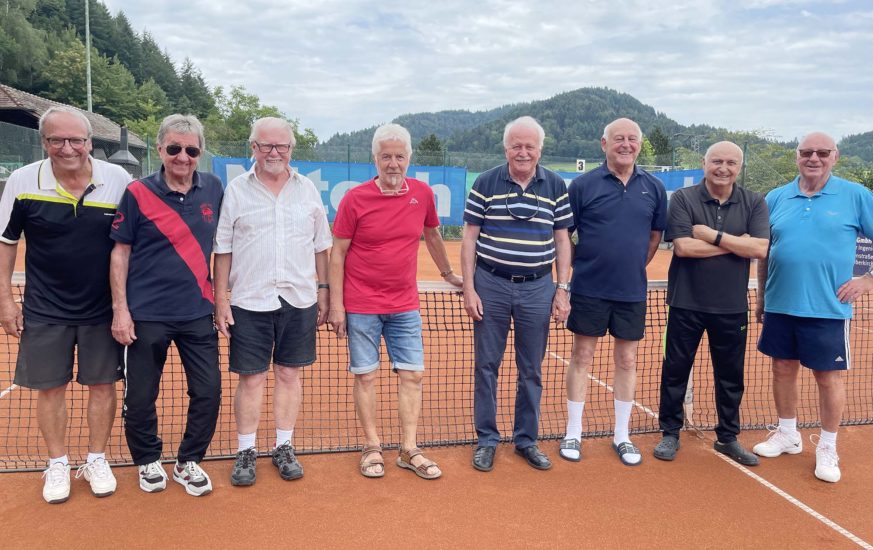 Freude über die überraschende Meisterschaft bei den Herren 70 (Doppel) der TSG TC Zell/TC Haslach. Von links: Helmut Siefert, Werner Dangl, Franz Dold, Wolfgang Rauer, Hans-Martin Moll, Bernd Antes, Dragutin Pirs, Hans Finkenbein. Foto: Verein
