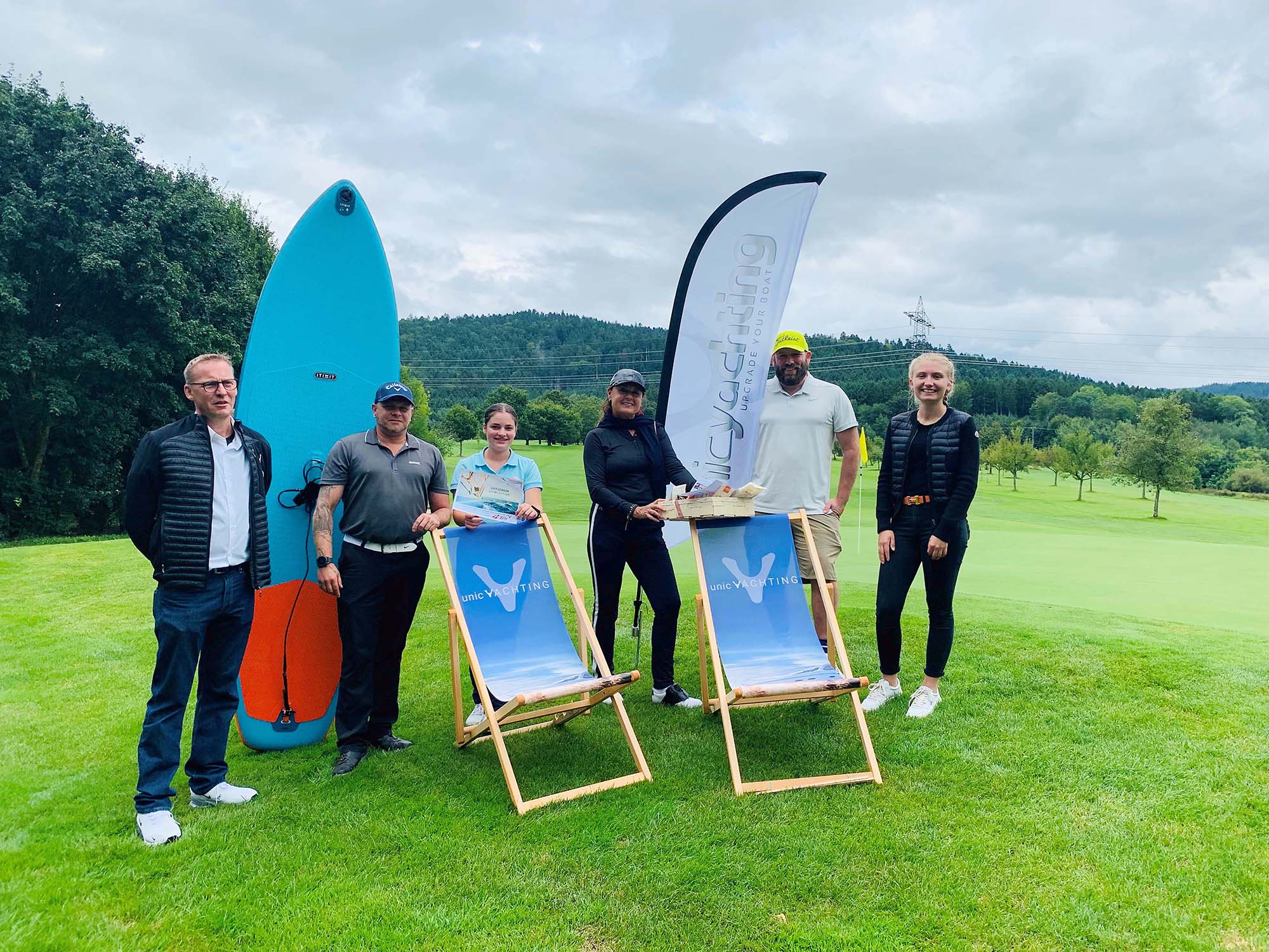 Präsident Volker Hamann, der selbst unter den Siegern war, freute sich mit dem Sponsor über das gelungene Sportevent und bedankte sich am Ende des Tages im Namen aller Golfer für die großzügigen Preise und die tolle Atmosphäre bei dem »Unicyachting«-Team.
