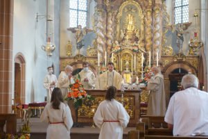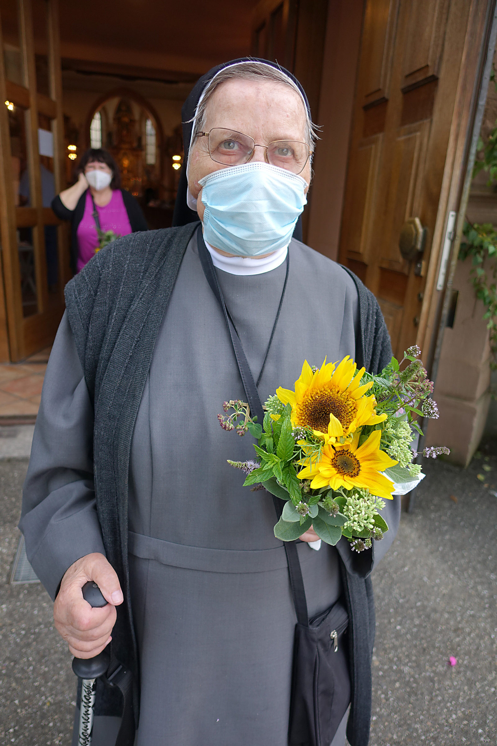 Am Festtag Mariä Himmelfahrt selbst füllten sich schon bald die außen aufgestellten Bänke, weil die zulässigen 100 Besucher die Plätze in der Kirche eingenommen hatten. Im feierlichen Hochamt sorgten die Beiträge des Kirchenchores Zell unter Wolfram Dreher für eine besonders festliche Note. Das Hochamt wie alle anderen drei Messen hielt Bruder Thomas Schied, Kloster Stühlingen, der als volkstümlicher Prediger mit seiner bildhaften Sprache die Menschen anspricht und Herz und Seele berührt.