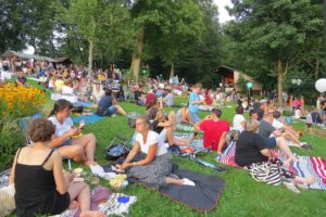 Die Nohocker-Partys sprechen alle Altersgruppen an: Am Donnerstagabend waren viele Jugendliche und junge Erwachsene gekommen, Familien mit Kindern sowie die mittlere Generation und tatsächlich auch einige Senioren. Der freie Eintritt und der günstige Umstand, auch später kommen zu können und früher gehen zu dürfen, machte den Reiz dieser Veranstaltung aus. Wie schön der Stadtpark bei Dunkelheit sein kann, merkt aber nur der Besucher, der dann noch da ist: Die dezente Beleuchtung und leuchtende Sitzkästen sorgten für eine stimmungsvolle Atmosphäre.