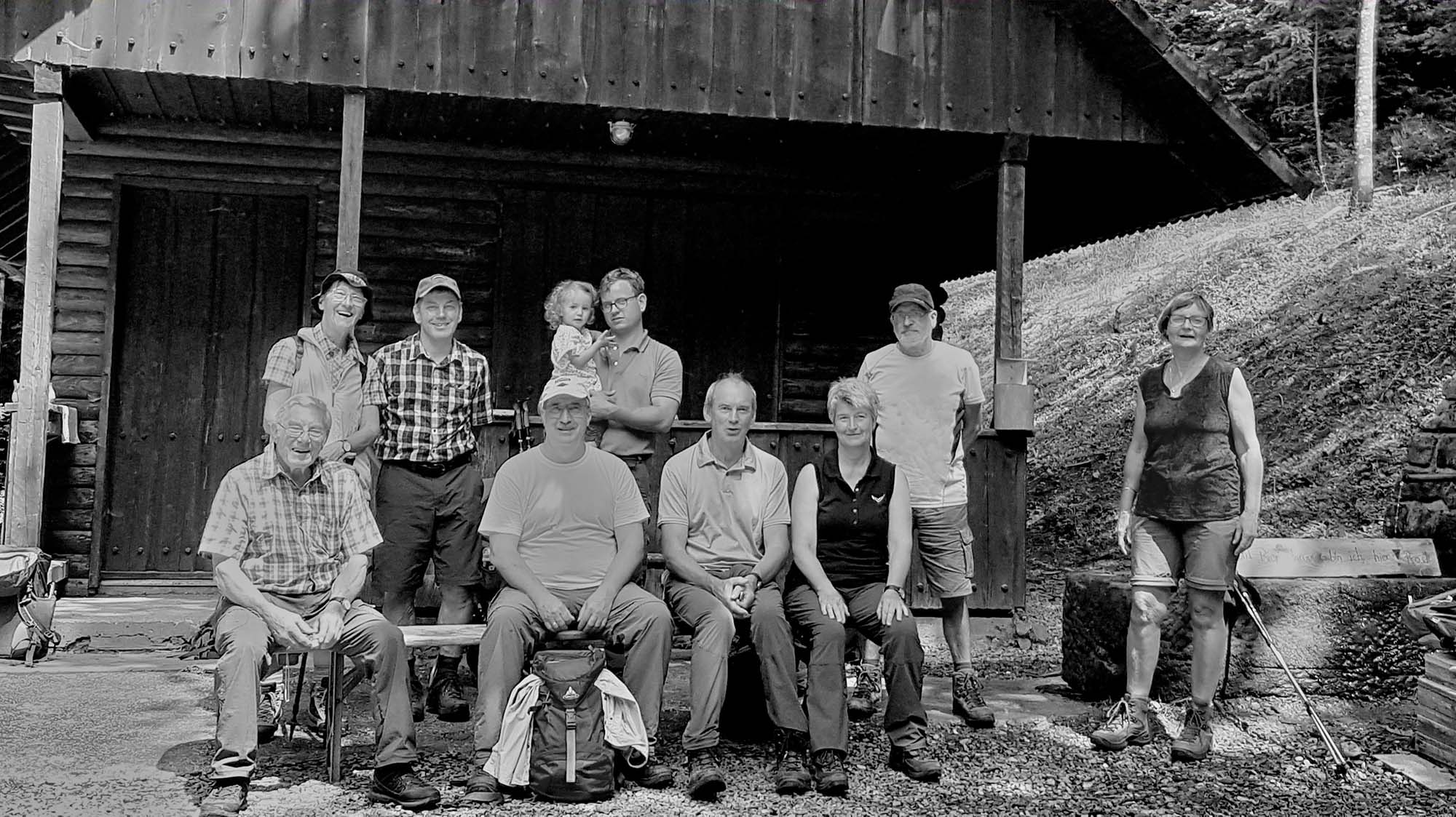 Eine kleine Rast bietet Zeit für ein Erinnerungsfoto: die Wandergruppe vor der Entersbacher Hütte. Foto: Schwarzwaldverein