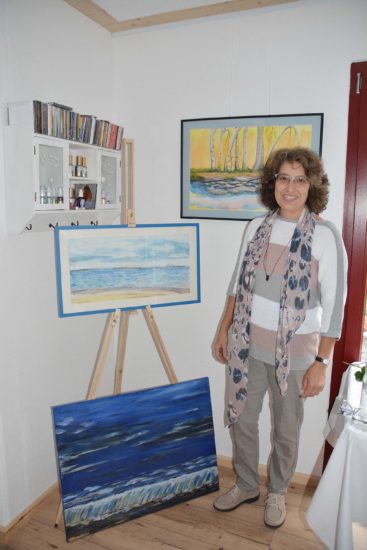 Maltherapeutin Simone Bischoff hat die Ausstellung am Wochen ende organisiert. Gemeinsam mit den anderen Teilnehmerinnen und Teilnehmern hofft sie auf ein reges Interesse seitens der Bevölkerung. Foto: Hanspeter Schwendemann