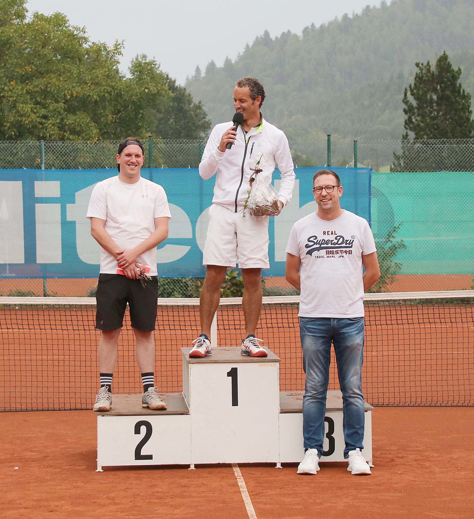 Die beiden Finalisten Benjamin Künstle und Benedikt Meyer hatten einen ziemlich einfachen Weg ins Endspiel, denn sie gaben nur wenige Spiele bis dahin ab. Dafür war aber das Finale zwischen dem Titelverteidiger Benjamin Künstle (LK 10) und seinem Herausforderer Benedikt Meyer (LK 12) gespickt mit Hochspannung und spektakulären Ballwechseln. Die zahlreichen Zuschauer freute es, dass beide Sätze über den Tiebreak gingen, die der zweite Sportwart des TC Zell für sich entschied. Er hatte sich im Vorfeld keineswegs als Favorit gesehen gegen den Clubneuling Benedikt Meyer, der erst seit wenigen Wochen hier im Tal lebt und vorher Verbandsliga für den TC Bernhausen spielte. »Wir freuen uns, dass Benedikt nächstes Jahr unsere Herren 30-Mannschaft in der 1. Bezirksliga verstärken wird«, meinte der alte und neue Clubmeister.