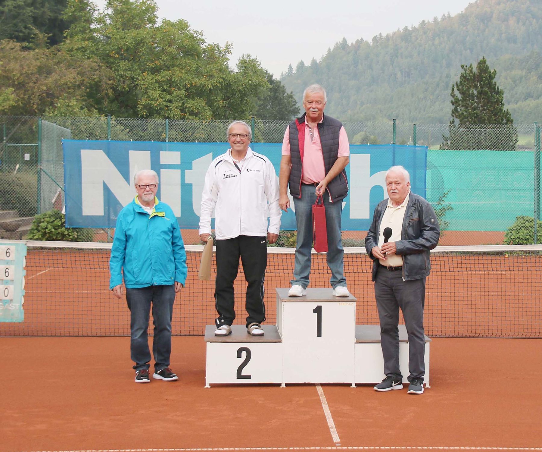 Bei den Herren 65 holte Bruno Halter den Titel vor Helmut Siefert. Flankiert von Mannschaftsführer Franz Dold (links) und Hans-Martin Moll.