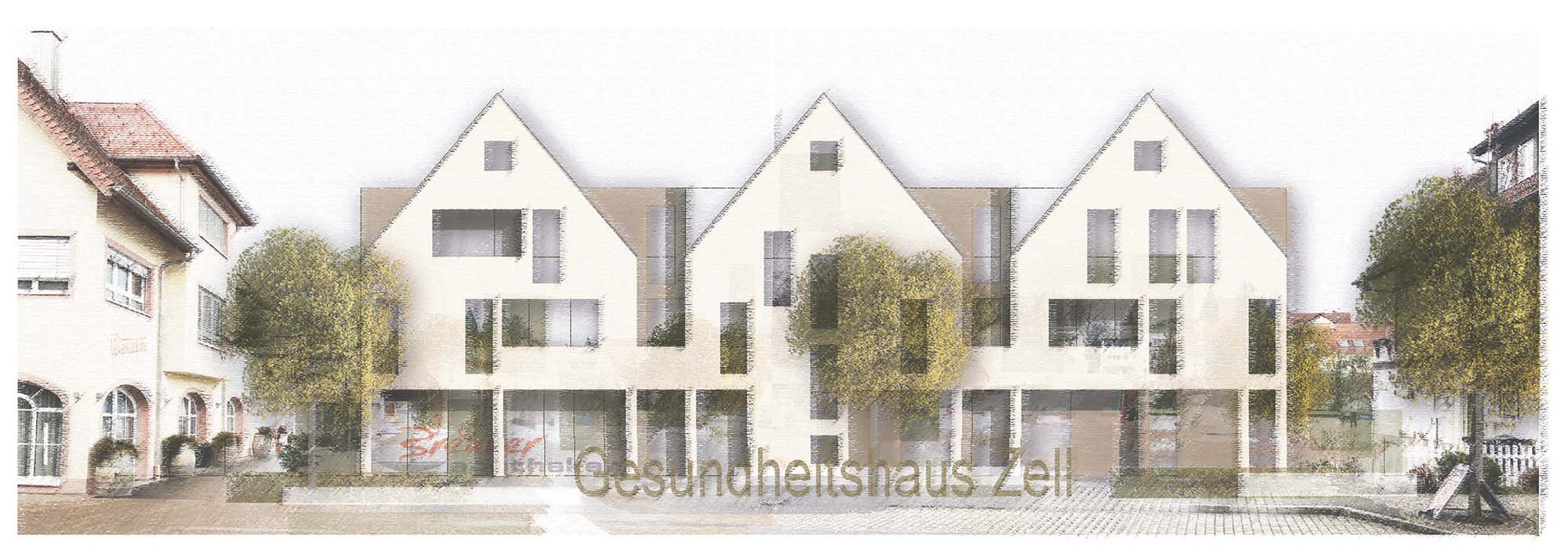 »Der geplante Neubau folgt den Vorgaben des Bebauungsplans, der entlang der Hauptstraße ein dreigeschossiges Gebäude vorsieht«, erklärte Geschäftsführer Burkhard Isenmann von der Firmengruppe Orbau, die als Investor das »Gesundheitshaus Zell« in der Oberstadt bauen wird. Drei Giebel mit einer Dachneigung von 47 Grad untergliedern den Baukörper, der ingesamt 33 Meter lang und 14 Meter tief sein wird.