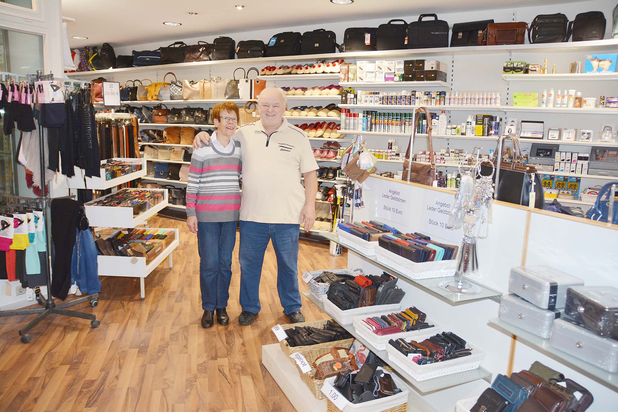 Stetig gewachsen ist das Warenangebot des Zeller Fachgeschäfts. Taschen, Geldbörsen, Schlüsseletuis, Gürtel – meist aus hochwertigem Leder – gehören dazu.