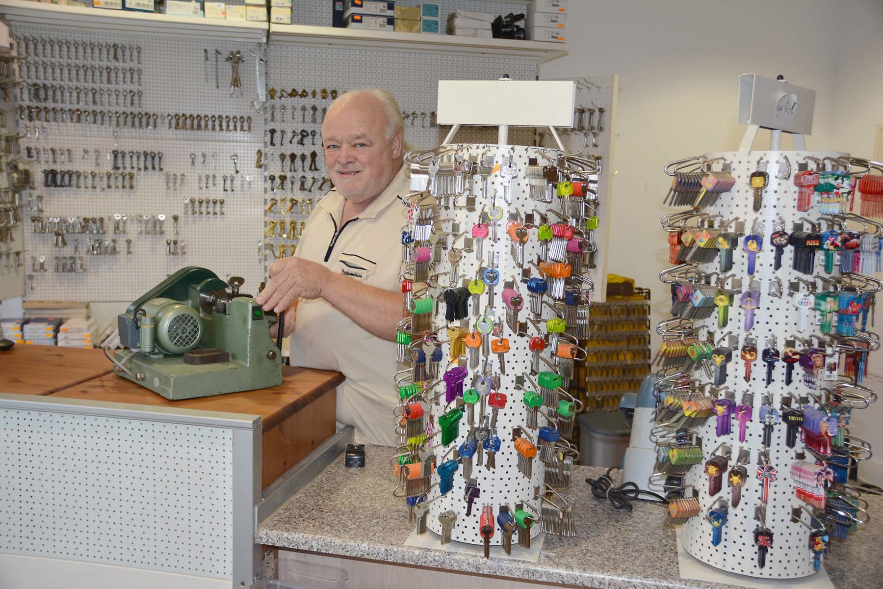 Im Bereich Schlüsseldienst stehen weit über 10.000 Schlüsselrohlinge bereit, so dass Josef Mulder eigentlich jeden Schlüssel nachfertigen kann. Dazu gehören auch Spezialschlüssel für Schließanlagen, wofür Josef Mulder über das entsprechende Patent verfügt.