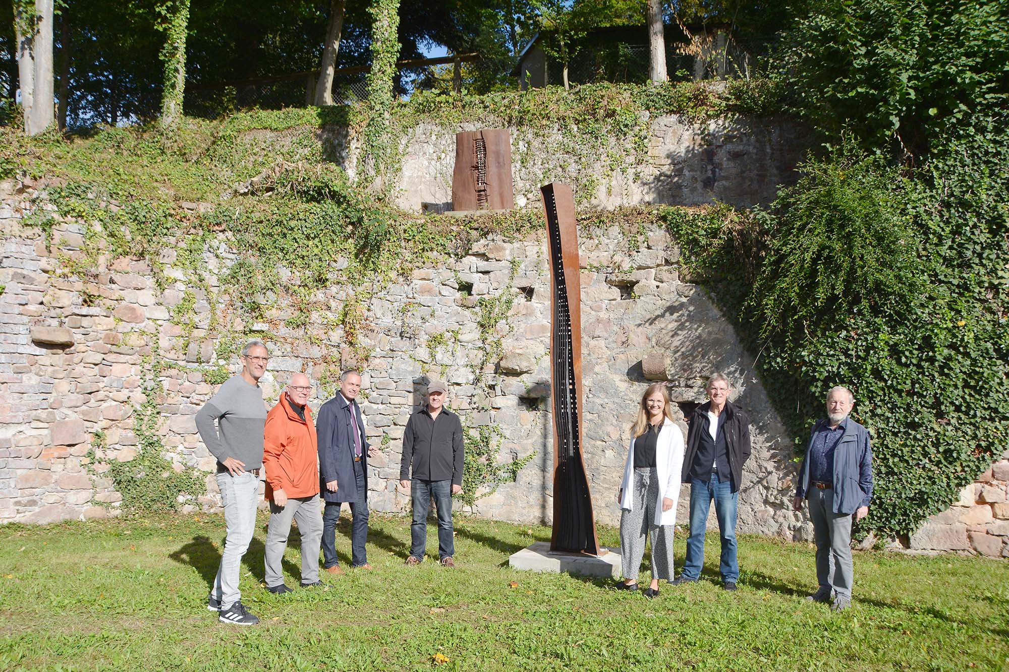 Bei strahlendem Sonnenschein kamen gestern die Wegbereiter des neuen Skulpturenwegs zusammen: Die Vorsitzenden Wolfgang Hilzensauer und Daniel Lehmann vom Förderverein Zeller Kunstwege, die Künstler Armin Göhringer und Albert Reichenbach, die ebenfalls dem Verein angehören, Vereinsmitglied Ludwig Börsig, Bürgermeister Günter Pfundstein sowie Alisa Dörfer und Nora Lay vom Stadtmarketing.
