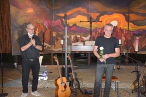 Dieser schien auch das Publikum zu »mobilisieren«, forderte es doch rhythmisch klatschend Zugaben. Mit »Got my eyes on you« erwies Wolfgang Kalb einem weiteren Granden des Blues die Ehre – John Lee Hooker: Kantige Riffs geben den Rhythmus vor, Kalb lässt die Mundharmonika davondriften, um sie mit wilden Stakkato-Noten wieder nach vorne zu bringen. Jubel im Kirchensaal, der bis nach Robert Johnsons bewegender Klage über eine verlorene Liebe anhielt. »Love in vain« adelte Kalb mit einem sensibel-melodischen Slide-Solo der Extraklasse. Diese Glanznummer allein war die edle weiße »Sommermusik«-Rose wert, die Kirchengemeinderat Joachim Groß dem Musiker überreichte.