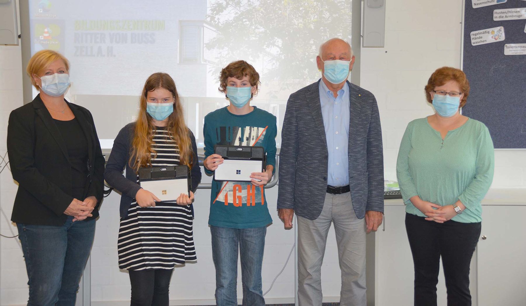 Anlässlich der Übergabe von Tablet-Schutzhüllen für die Schülerinnen und Schüler der Realschulklasse 7a im Bildungszentrum Ritter von Buß informierte sich der Vorsitzende des Fördervereins, Bernd Antes, über den Unterricht mit den neuen mobilen Endgeräten. Rektorin Anne-Cathrin Medel bedankte sich für die finanzielle Unterstützung in Höhe von 800 Euro.