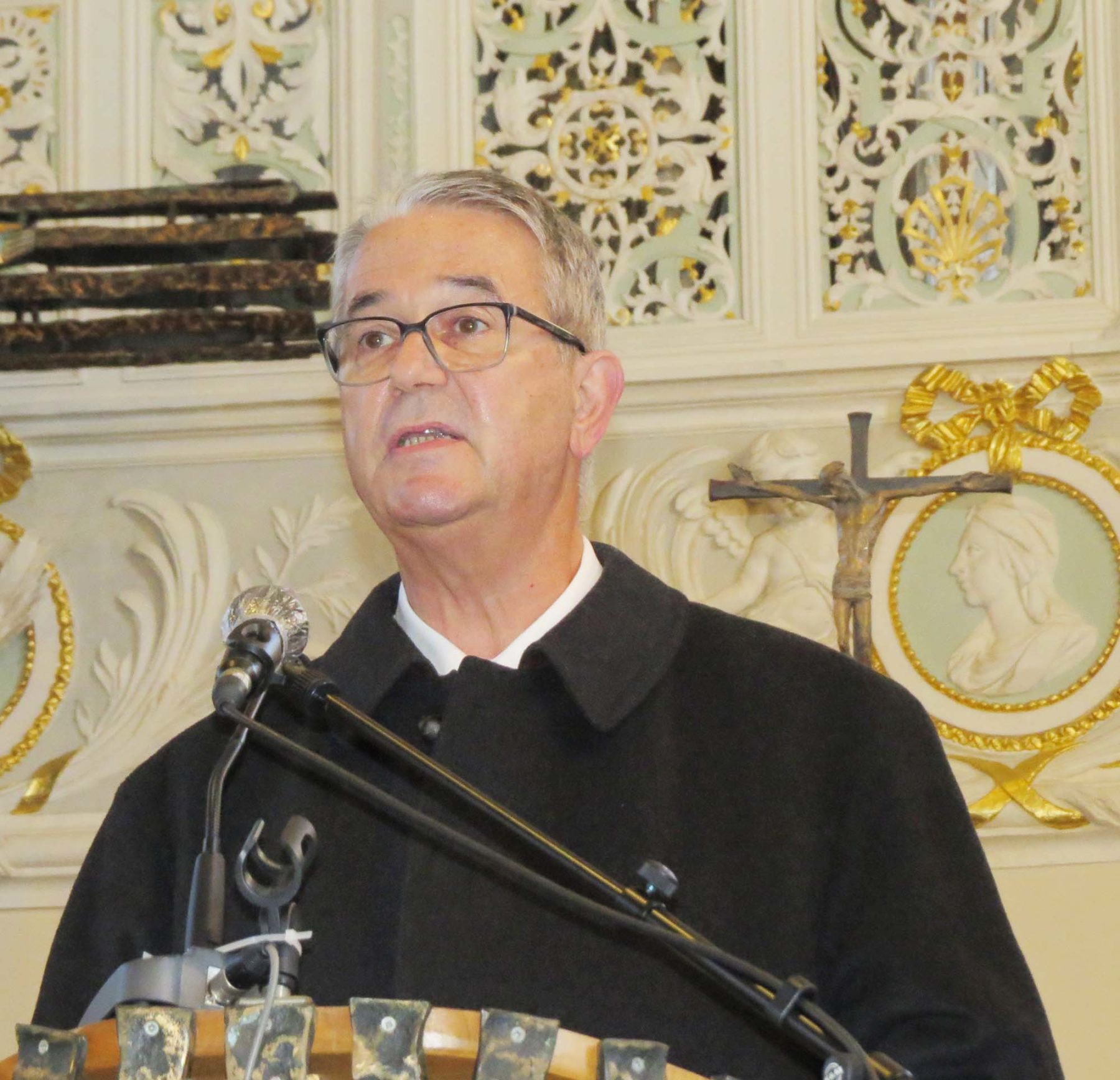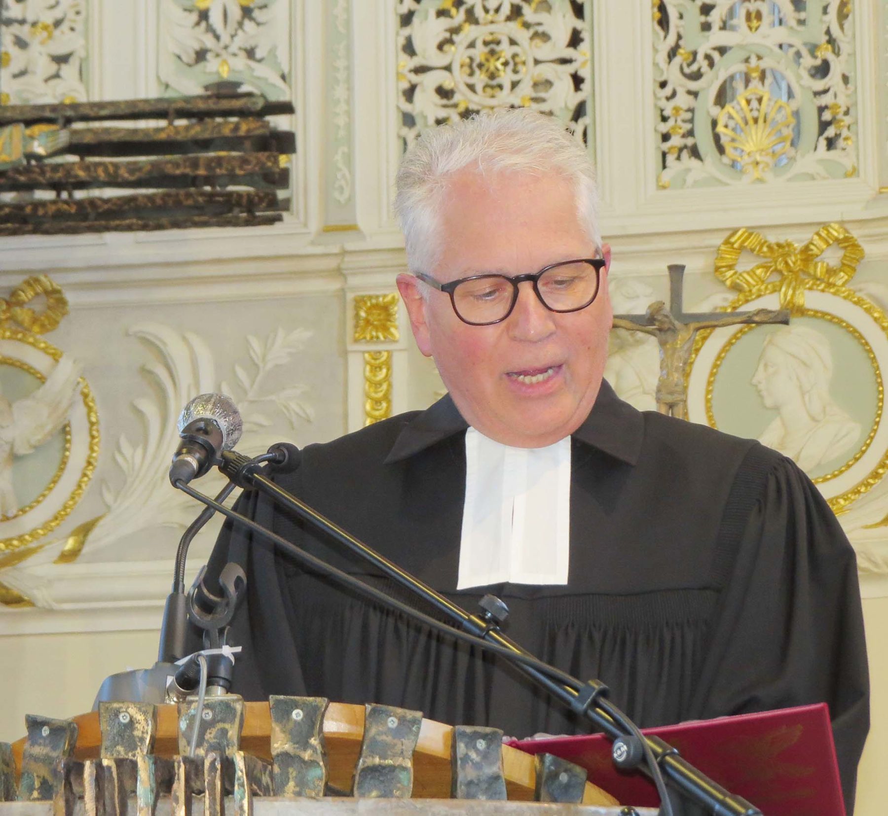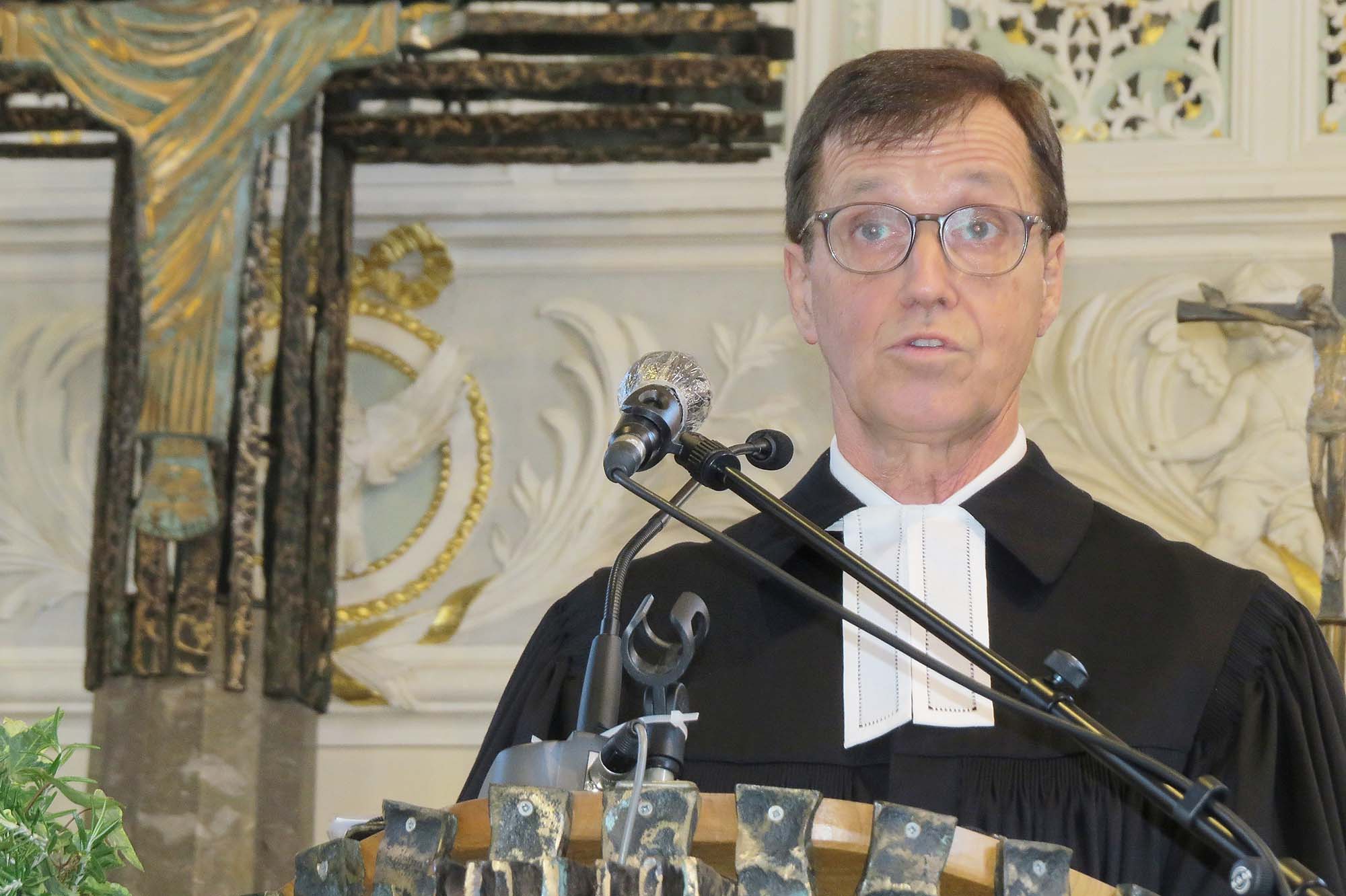 Pfarrer Reinhard Monninger erklärte in seinem Schlusswort: »Ich bin von Herzen dankbar, hier so viele freundliche Menschen getroffen zu haben.« In einer langen Aufzählung richtete er weitere Dankesworte an zahlreiche Gruppen und Einzelpersonen. Foto: Gisela Albrecht