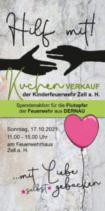 Die Kinderfeuerwehr Zell verkauft am Sonntag, 17. Oktober Kuchen am Feuerwehrgerätehaus im Steinenfeld. Der Erlös des Spendenverkaufs kommt der Flutopferhilfe der Feuerwehrkameraden in Dernau im Ahrtal zugute.