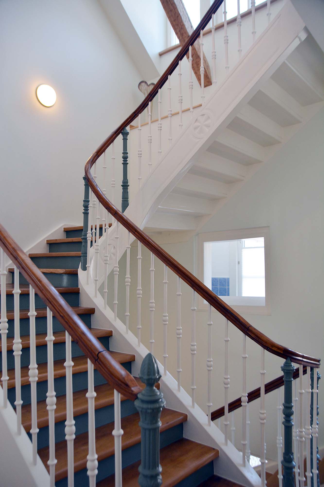 Der Engelbau wurde denkmalgerecht saniert. Das markante Treppenhaus ist ein echter Blickfang.