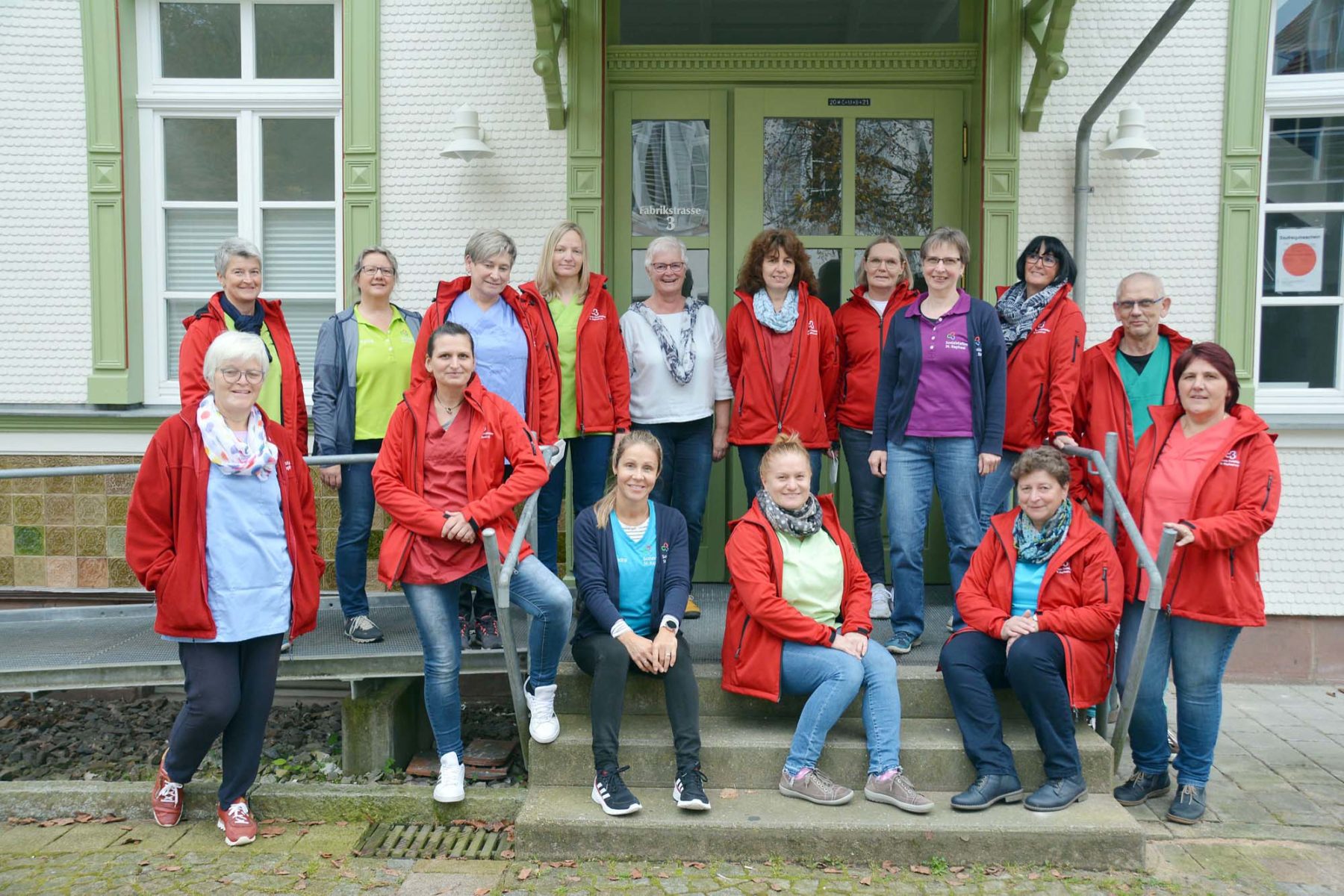 Ein Teil des Teams der Kirchlichen Sozialstation. Hintere Reihe, von links: Gabriele Antritter, Sylvia Schmider, Esther Bächle, Anita Müller, Martina Boschert, Andrea Lehmann, Melanie Körnle, Regina Börsig, Bärbel Buchholz, Martin Mischnick. Vordere Reihe, von links: Gertrud Huber, Regina Schäfer, Sandra Kornmayer, Elfriede Kunz, Petra Isenmann, Claudia Hansmann.