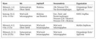 Die Angebote können jeweils ohne Voranmeldung genutzt werden. Da der Impfstoff pro Termin begrenzt ist, wird bereits beim Anstehen geprüft, ob die Voraussetzung für den jeweiligen Impftermin erfüllt ist. So wird ein unnötiges