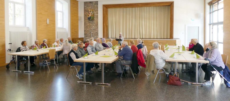 So freute sich auch Monika Lehmann vom Leitungsteam »FORUM älterwerden«, die Seniorinnen und Senioren begrüßen zu dürfen. Sie kündigte an, dass an diesem Nachmittag viel Zeit bliebe, mal wieder miteinander zu »schwätze« bei Kaffee und Kuchen, einer Brezel, Wein, Bier oder Schorle. Es war geplant, das gemütliche Beisammensein durch zwei Programmpunkte zu umrahmen.
