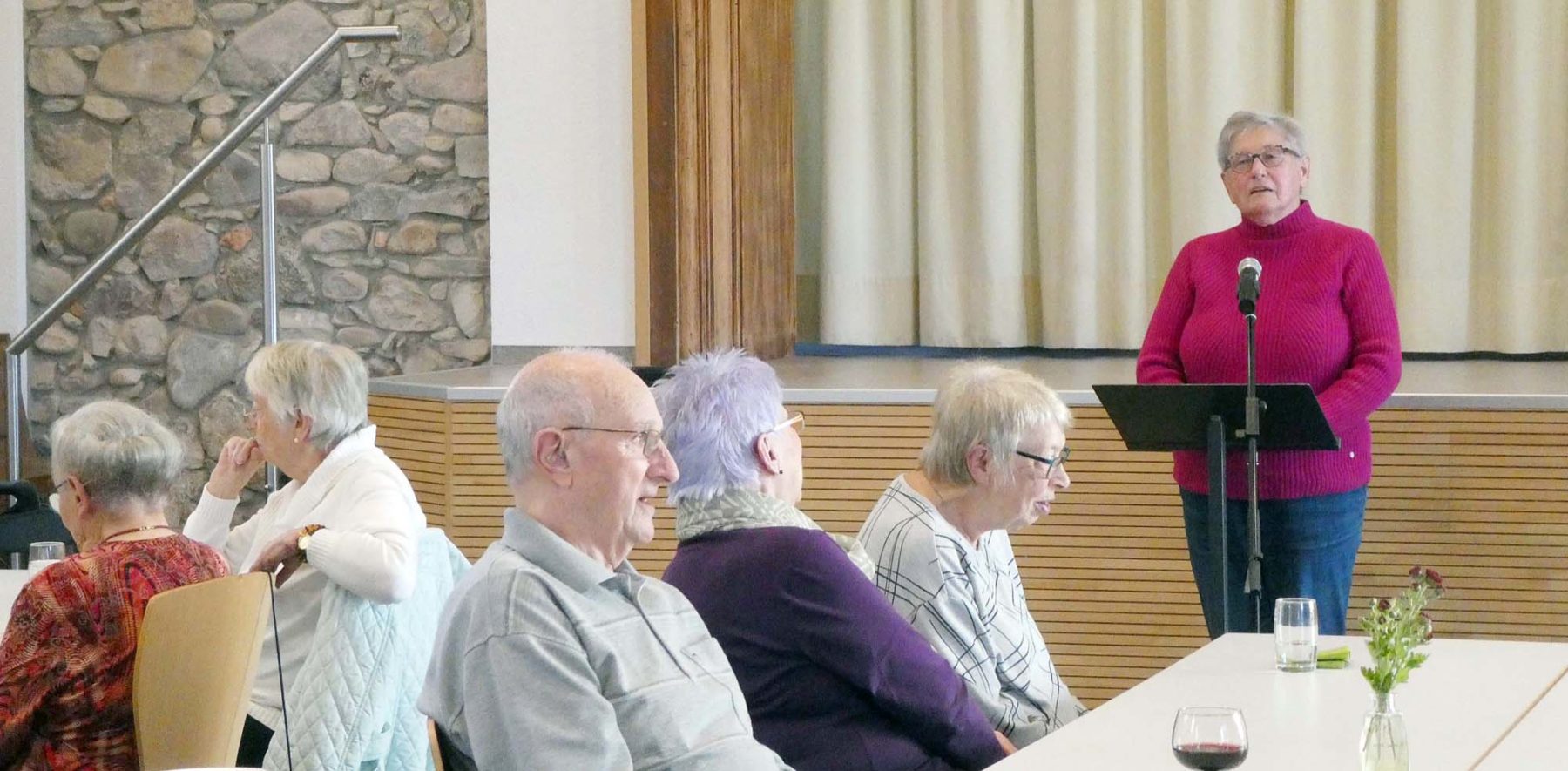 Ganz spontan ergab sich, dass von Seiten der Seniorinnen und Senioren auch Beiträge kamen. So trug Edith Faisst auswendig und mit einem Schmunzeln im Gesicht das Gedicht »Das Meisterwerk« vor. Das Meisterwerk, das Gott aus einer Rippe des Mannes erschuf, war die Frau. Dieser Vortrag hat die Zuhörer zum Lachen gebracht und wurde mit viel Beifall bedacht.