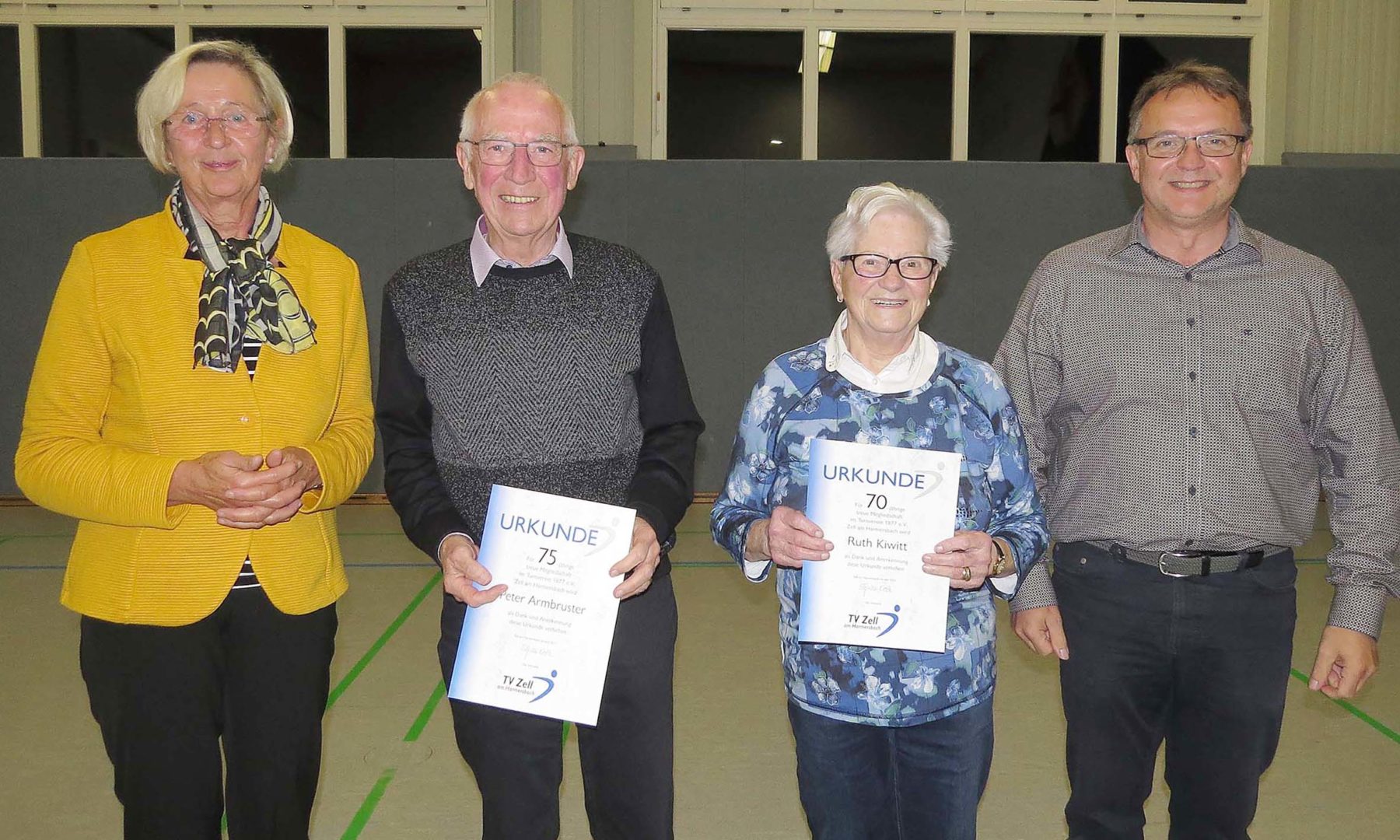 Foto: Gisela AlbrechtEhrungen sind eine schöne Tradition im Turnverein Zell. Sie wurde auch bei der diesjährigen Mitgliederversammlung gepflegt. Viele Mitglieder sind schon viele Jahre im Verein – einige bereits ein Großteil ihres Lebens. Die Vorsitzende Sybille Nock gratulierte allen Geehrten und überreichte ihnen Urkunden und Anstecknadeln.