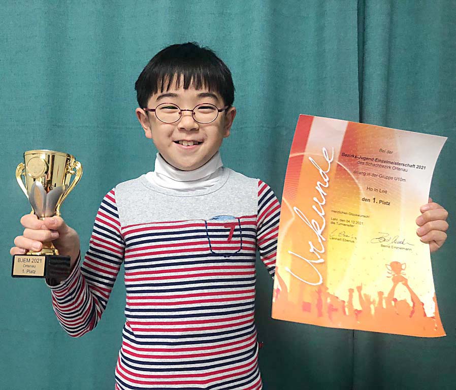 In diesem letzten Gefecht entwickelte sich ein nervenaufreibendes Gemetzel auf dem Brett und die Uhr tickte unerbittlich. Lee sah sich zunächst einem Königsangriff ausgesetzt, welchen er aber abwehren konnte, um dann selbst einige Bauern zu erobern, was aber nicht zum Partiegewinn ausreichte. Beide Spieler hatten nur noch wenige Sekunden auf der Uhr – Lee 3, sein Gegner 5 – als Lee den Turbo einschaltete und seine letzten Züge schneller ausführte als sein Gegner. Eine einzige Sekunde Guthaben zeigte Lees Uhr als die Zeit bei seinem Gegner abgelaufen war. Auf Ohlsbacher Seite gab es Tränen, während Lee sich über einen hart erkämpften Sieg freuen durfte. Beide Spieler hätten wohl den Titel verdient gehabt. Für Lee geht’s nun zur Badischen Jugend Einzelmeisterschaft. Corona bedingt steht der Termin noch nicht fest. Geplant war ursprünglich der Zeitraum vom 5. bis 8. Januar in der Sportschule Schöneck. Der Schachclub Zell wünscht viel Erfolg.