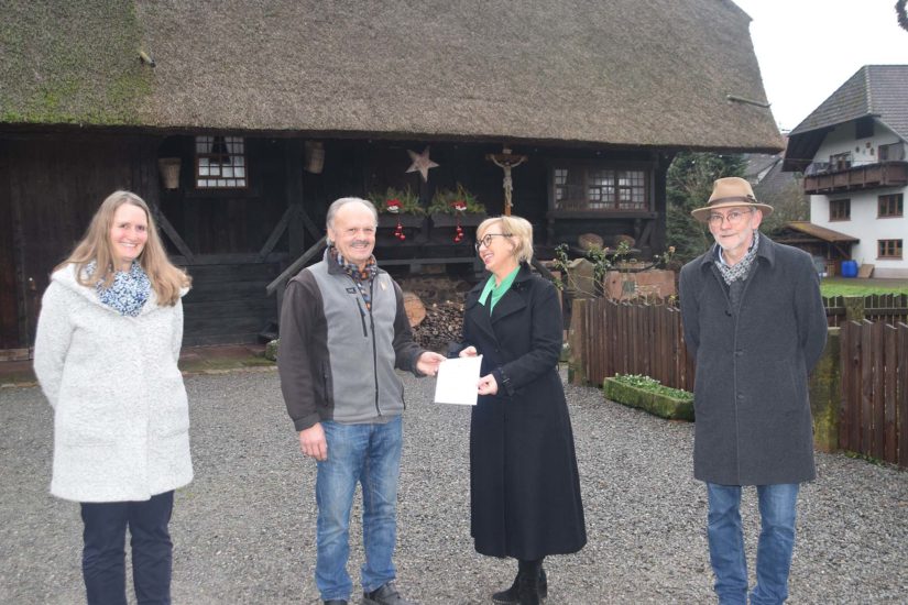 Am Donnerstag überreichte Lions-Präsidentin Bärbel Winkler auf dem Gelände des Fürstenbergerhofs den Hauptpreis des diesjährigen Lions-Adventskalenders an Erwin Pfaff aus Zell a. H., passend zum Kalenderbild, das den Fürstenberger-Hof zeigt.
