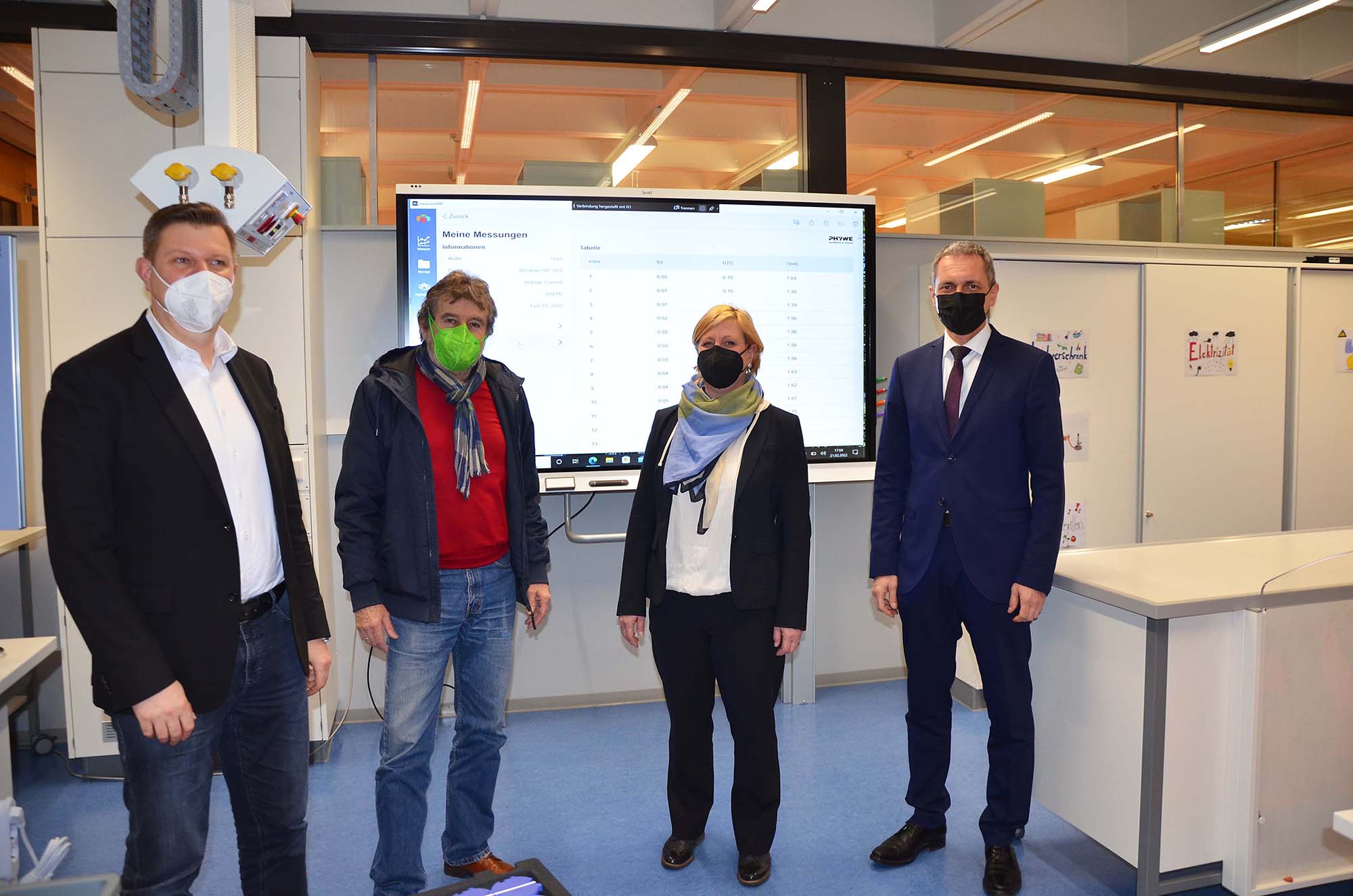 Bei den Schülern der Klasse 7 bis 10, in denen lehrplanmäßig Physik unterrichtet wird, komme der neue Raum mit seinen technischen und digitalen Möglichkeiten sehr gut an, betonte Lehrer Heckel auf Nachfrage von Stadtrat Grafmüller. »Viele fühlen sich wie in einem Labor«, so Heckel. Darüber hinaus eigne sich der Raum für den Chemieunterricht, ergänzte Lehrerin Laura Appenzeller. Sie hatte zusammen mit ihrem Kollegen einige Stationen vorbereitet, an denen man sich informieren und selbst betätigen konnte.