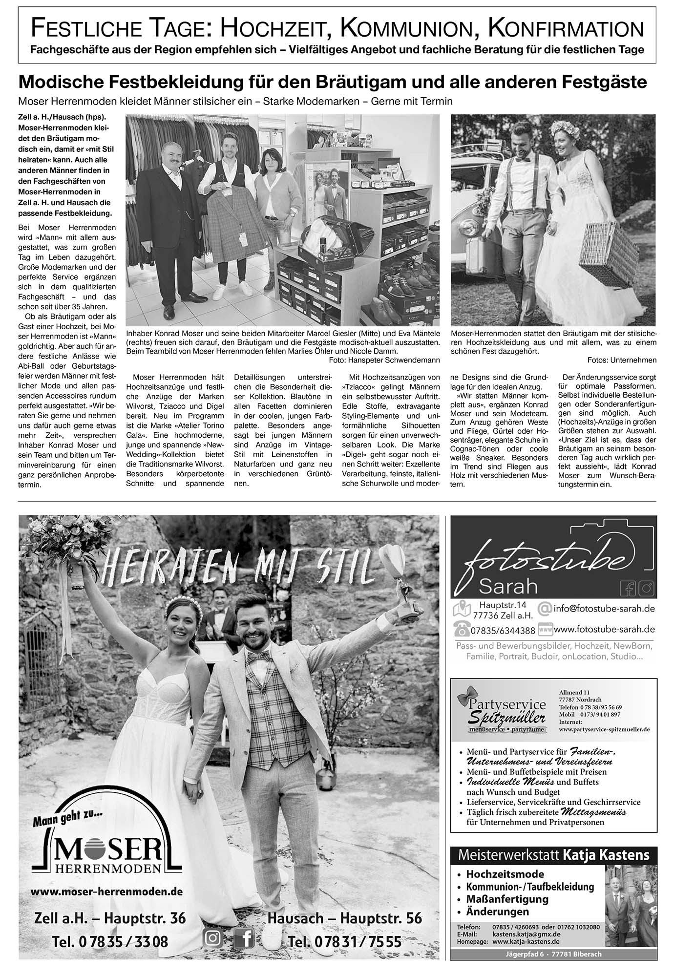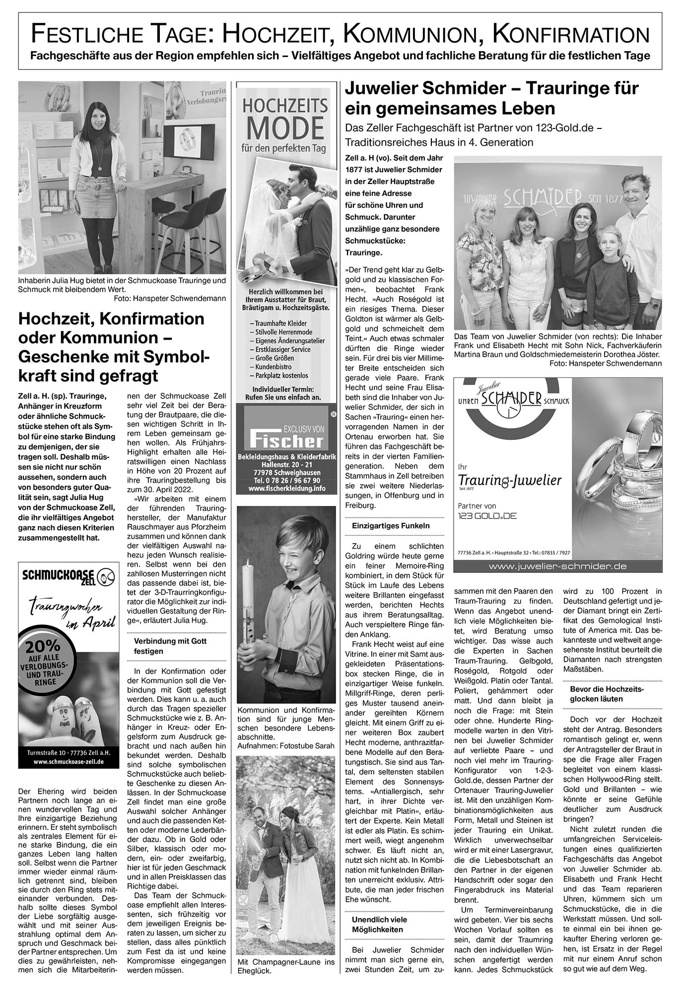 Zell am Harmersbach | 16.03.2022 Festliche Tage: Hochzeit, Kommunion, KonfirmationFachgeschäfte aus der Region empfehlen sich – Vielfältiges Angebot und fachliche Beratung für die festlichen Tage Foto: Foto: von Schwarzwälder Post Foto: Schwarzwälder Post Foto: Schwarzwälder Post Foto: Schwarzwälder PostDas könnte Sie auch interessieren:Foto: Inka Kleinke-BialyHildegard und Klaus Oehler feierten GoldhochzeitFoto: Touristen-Info NordrachWeihnachtszauber 2025 in NordrachMärchenhafte Gaumenfreuden