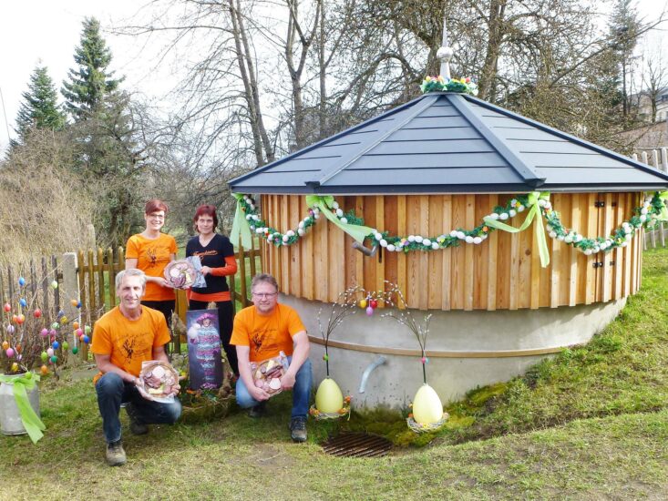 Eine Idee und ein Bild für die Götter, das die Jury des Fotowettbewerbs überzeugte. Dass sie gewonnen hatten, erfuhren die Frauensteiner schnell. Sie hatten darüber nochmal Freude und legten die Aktion ad acta. Zu ihrer Überraschung kam wenige Tage vor dem Osterfest 2022 ein Paket mit gefüllten Vespertellern der Metzgerei Damm und ein Leinwandbild mit Bändelenarro im fernen Frauenstein an. »Dafür vielen Dank und wenn es wieder soweit ist: Hoorig, …«, senden die Sahnehäubchen aus Frauenstein liebe Grüße in den Schwarzwald.