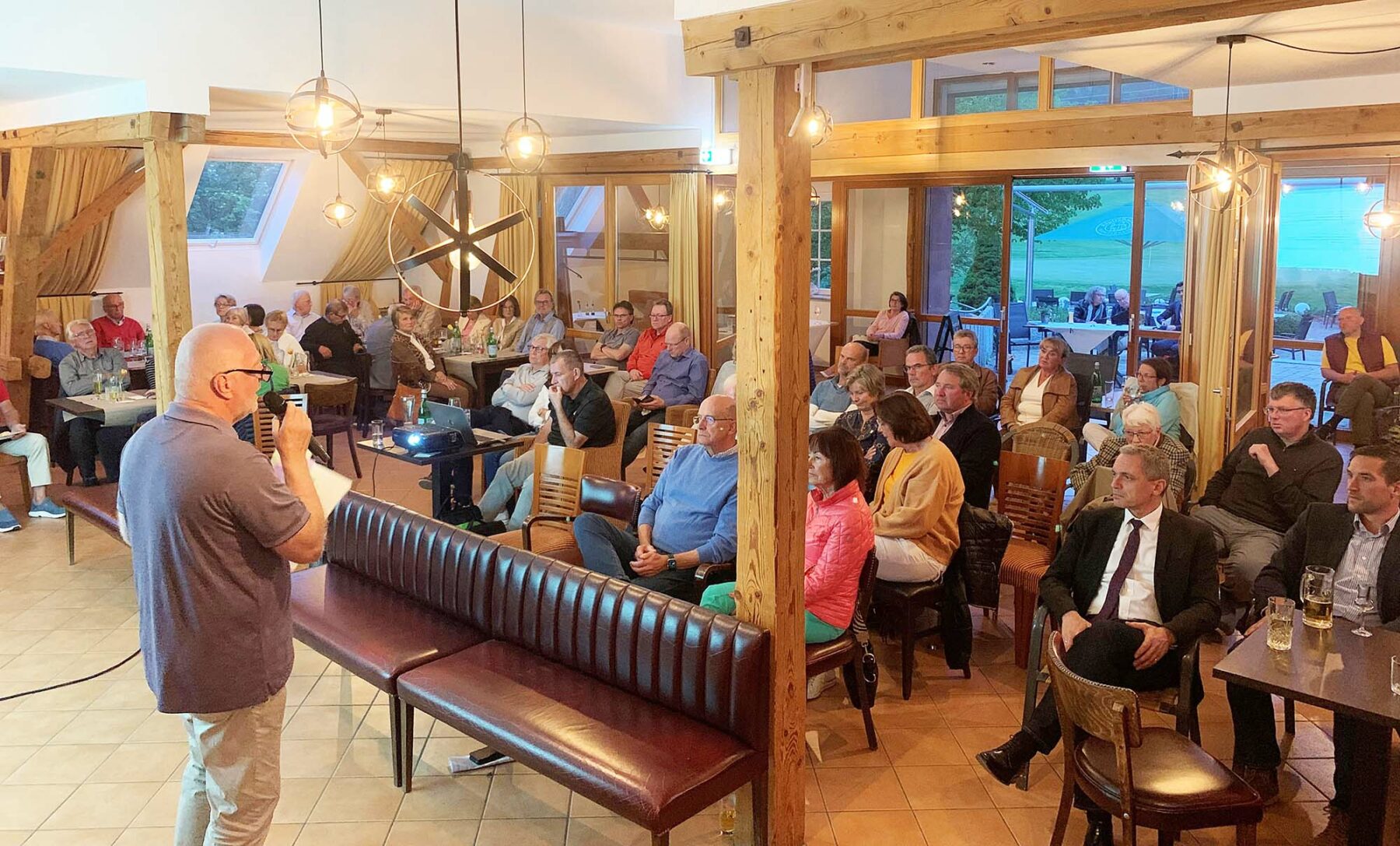 Beisitzer Karl Lehmann erläutert das geplante Konzept der Fairwaybewässerung, welches in Zusammenarbeit mit dem Arbeitskreis »Platz« ausgearbeitet wurde.