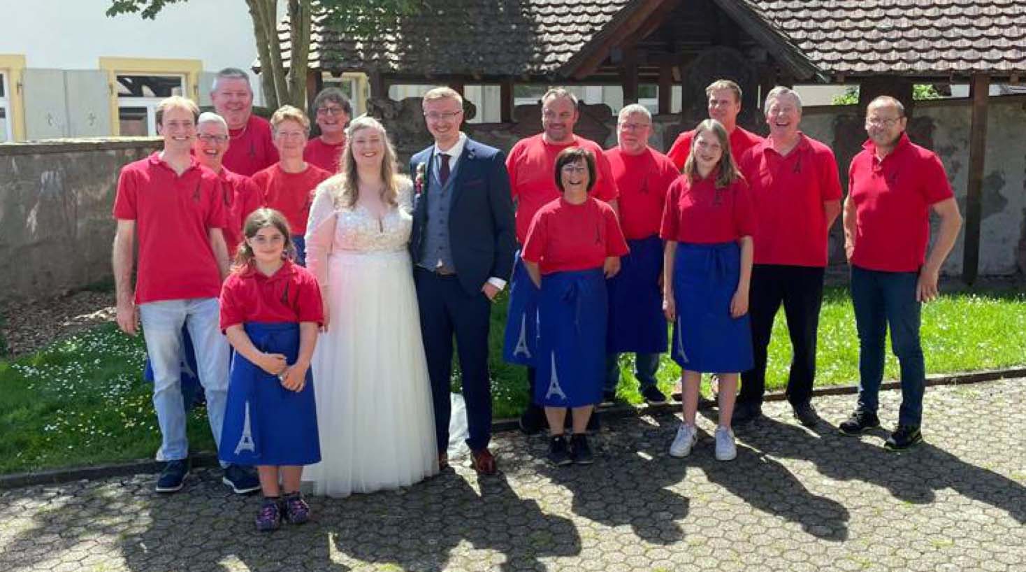 Und genau diese Fasendgemeinschaft unterstützte das Paar an ihrem großen Tag mit der Bewirtung des Sekt empfangs. Natürlich durfte das Spalier stehen vor der Kirche nicht fehlen. Mit einem kräftigen »Zur Mitte, zur Titte, zum Schisser, prost wir sind Klein Pariser«, wurden die zwei frisch Vermählten empfangen.