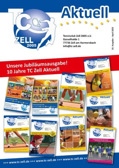 Seit zehn Jahren erscheint immer zu Beginn der Sommersaison die Clubzeitschrift »TC Zell-Aktuell«. Verantwortlich dafür zeichnet das Redaktionsteam Sabine Richter und Anita Bürk sowie für das Layout Dirk Vetter mit seiner Frau Veronika.