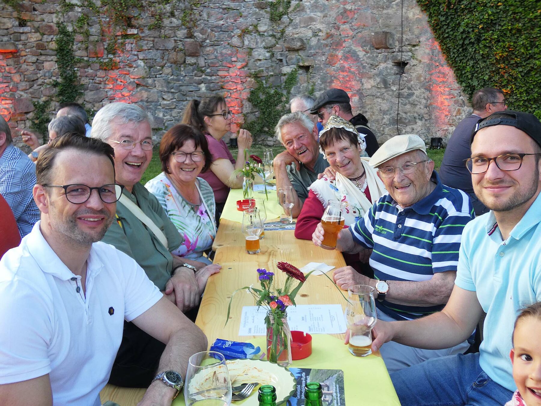 Herrschte bereits anlässlich des offiziellen Empfangs reger Betrieb, so hielten sich am Abend bis zu tausend Gäste zeitgleich auf dem stimmungsvoll illuminierten, langgestreckten Areal vor dem Rundofen auf: Sommerparty war angesagt! Fröhlich wurde geschmaust, getrunken und auch getanzt, zu den Klängen der Zeller Stadtkapelle und der Band »PAN«.